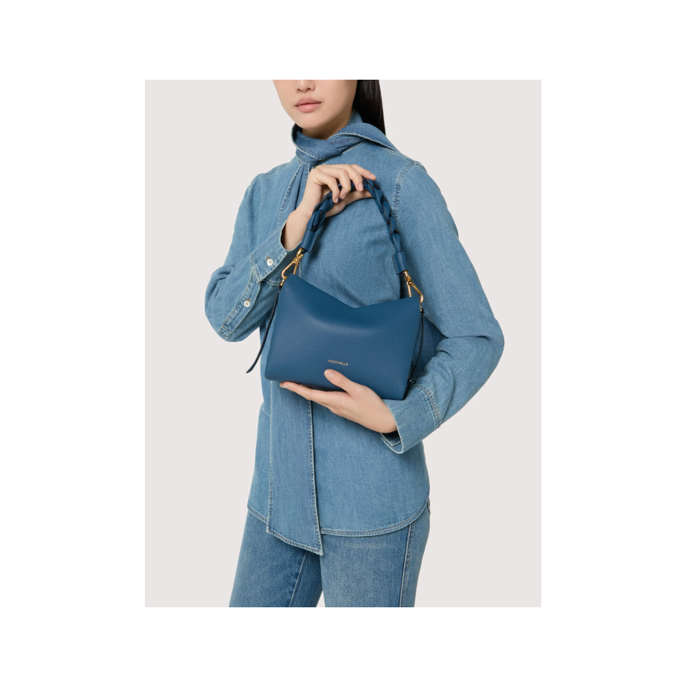 Tasche Coccinelle Liya aus echtem leder in den farben puder, patte und clip-griff in leder und ketten, goldene, innen-sfoderati, innentasche port-objekte, die details in metalleria gold, material echt leder, struktur, halb steif.
