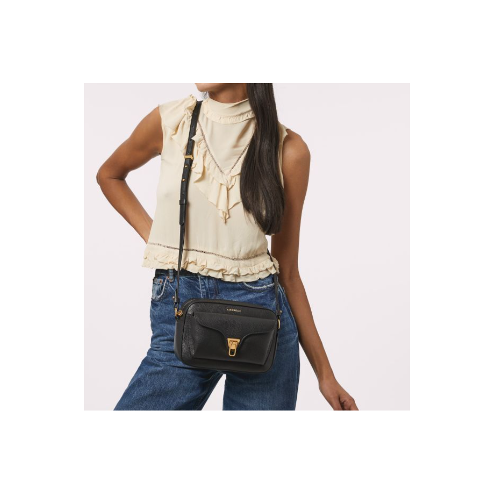 Borsa Coccinelle Liya genuine leather color powder pink, closure with flap and clip, leather handle and golden chain, and internal sfoderati, internal pocket for miscellany, details, hardware gold, material genuine leather, semi rigid.