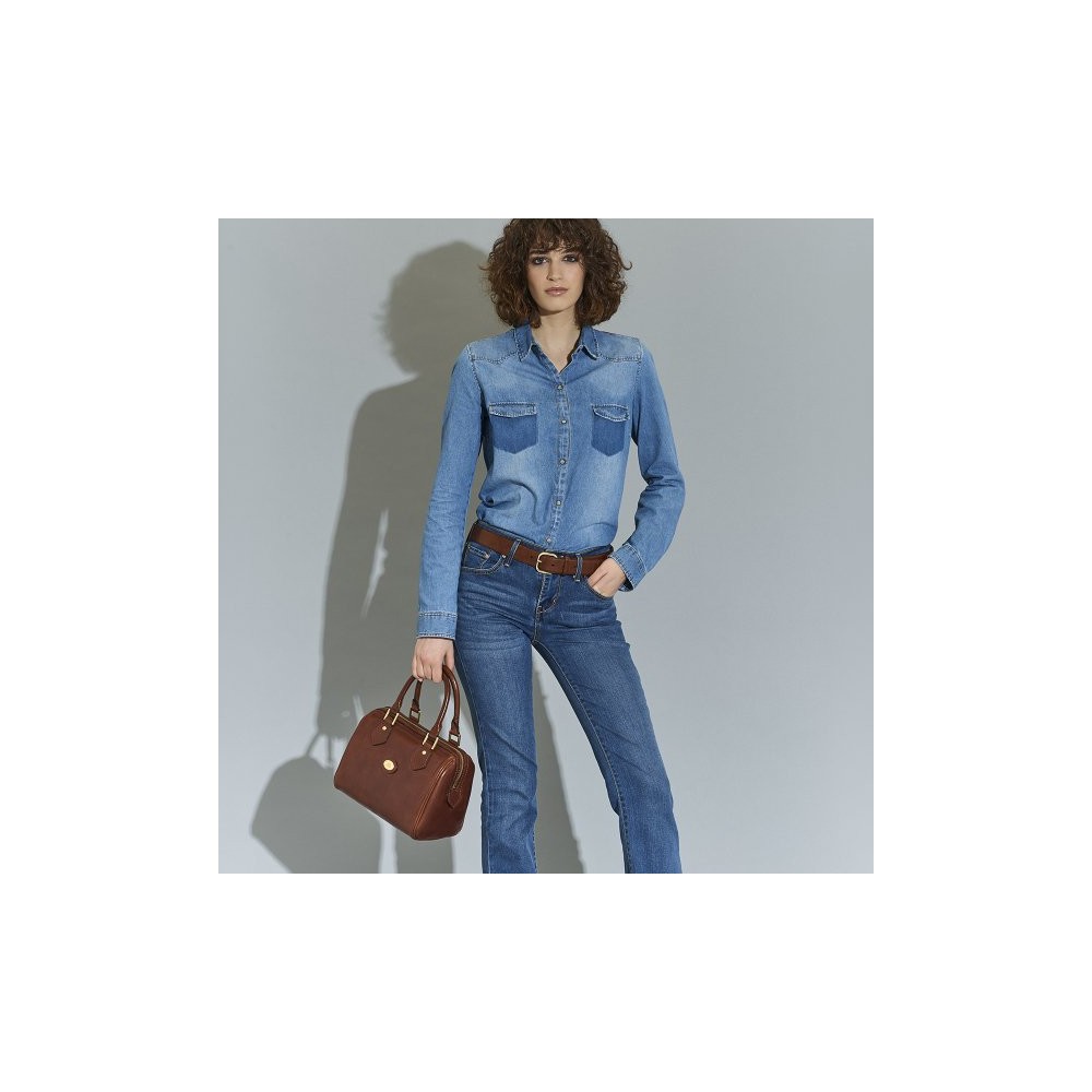 Borsa bauletto donna The Bridge model, two handles, zipper closure, leather shoulder strap, removable, adjustable, fancy leather, material genuine vegetable leather buffered by hand, line Story Woman.
