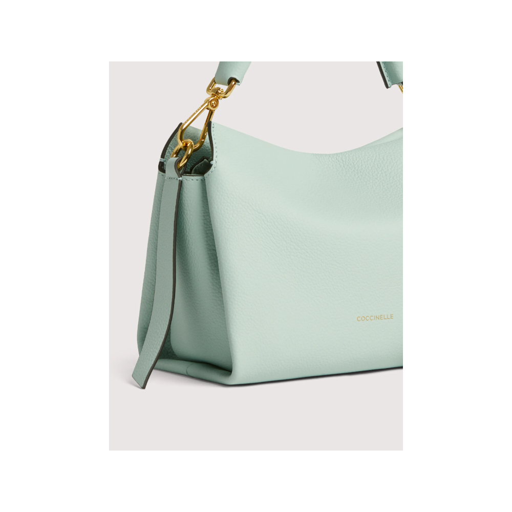 Borsa Coccinelle Liya genuine leather color powder pink, closure with flap and clip, leather handle and golden chain, and internal sfoderati, internal pocket for miscellany, details, hardware gold, material genuine leather, semi rigid.