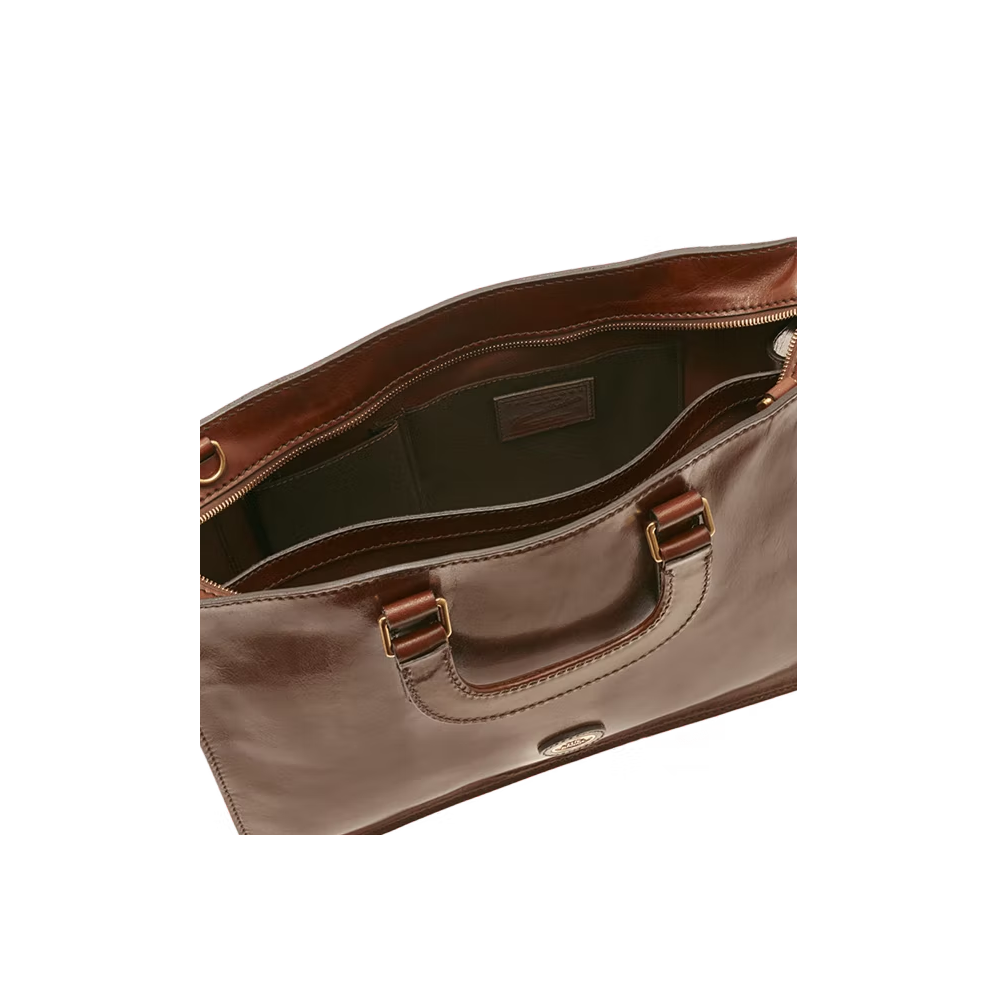 Borsa Postina donna The Bridge, tracolla in pelle regolabile, chiusura a bottone, tre scomparti interni, tasca zip esterna, fantasia cuoio, materiale vera pelle, linea Story Donna.