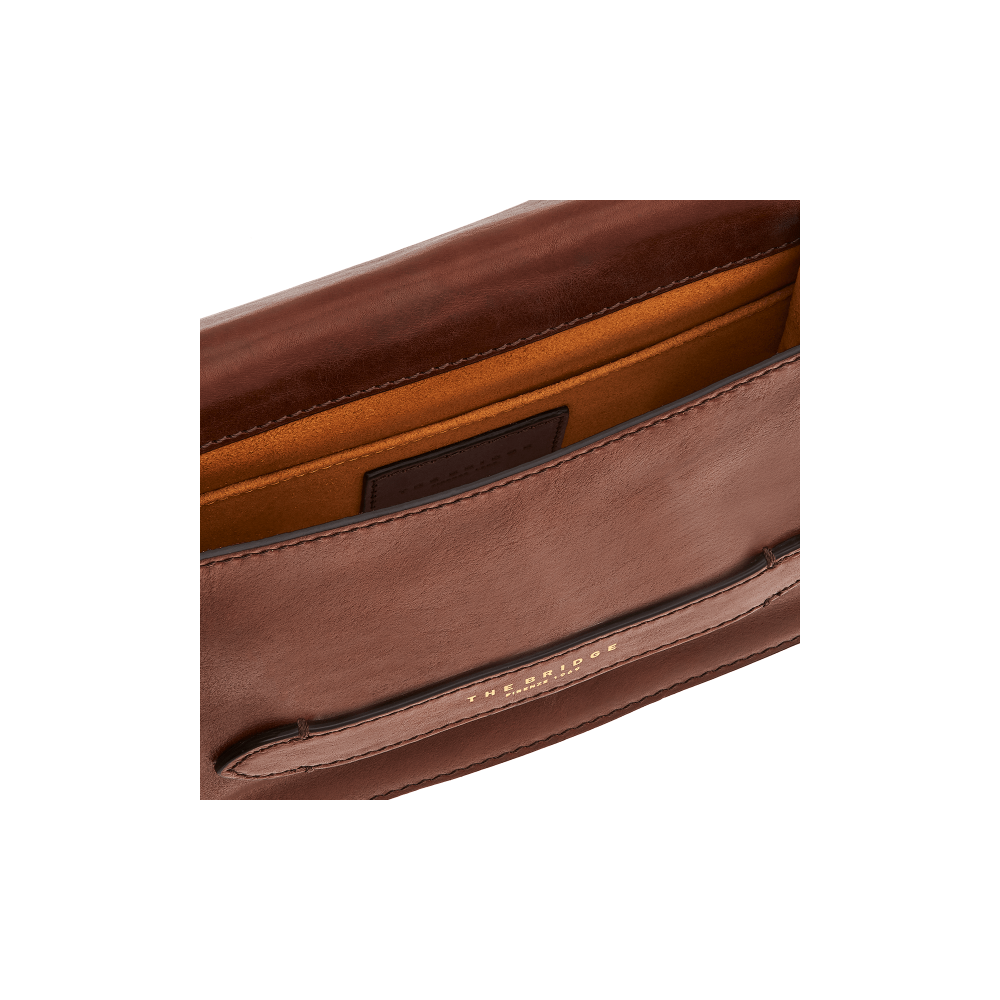 Borsa Postina donna The Bridge, tracolla in pelle regolabile, chiusura a bottone, tre scomparti interni, tasca zip esterna, fantasia cuoio, materiale vera pelle, linea Story Donna.